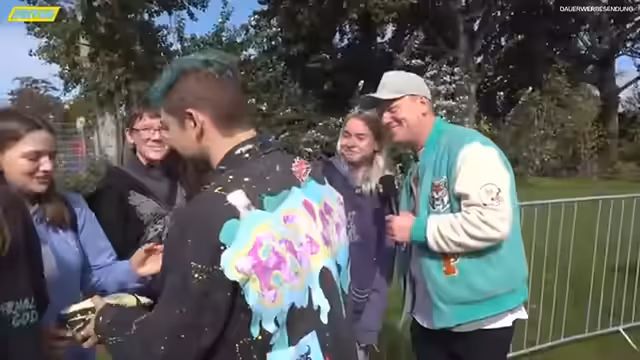 00:29:05Der Start des Events verzögert sich um etwa eine Stunde aufgrund von Problemen mit der Wasserversorgung. Eine Wasserleitung ist gebrochen, was die Befüllung der Wasserbecken und die Funktion der Toiletten beeinträchtigt hat. Ingo, der Veranstalter, erklärt die Situation. Die Toiletten funktionieren wieder. Wasser ist wichtig für einige Hindernisse, wie Rutschen. Es gibt eine Creator-Rutsche mit einer Sprungschanze. Das Wetter hat sich verbessert. Inscope trägt Leggings von Julia Römmelt. Er spricht über eiserne Disziplin, Konstanz und Homogenität im Team. Zu seinem Team gehören Mia Elineva, Yeneka, Julia Römmelt und Jette. Er hat sich den Knöchel verknackst. Es wird viel mit Wasser zu tun geben. Ihm wird jetzt erst bewusst, dass es viel Wasser gibt. Er wird mit Köpfer ins Wasser springen. Am Ende gibt es Federn. Seine Frau wird interviewt. Sie ist im selben Team wie Inscope. Sie glaubt, dass sie gute Chancen haben, weil sie fit sind. Sie hat sich nicht besonders vorbereitet. Sie hat Respekt vor dem Event und Angst vor Verletzungen. Sie sind die Raptoren. Sie sind hinterhältig. Sie freut sich auf das Event.