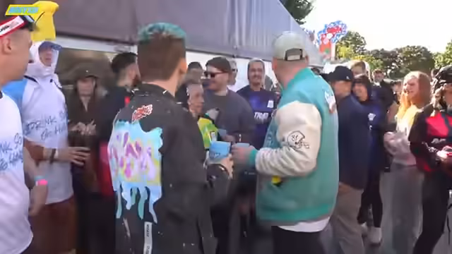04:23:15Es wird das Creator Zelt betreten, um sich zu erfrischen. Rezo und Knossi präsentieren ihr gemeinsames Getränk Dragon Fruit von Holy, das zuckerfrei ist. Rezo äußert den Wunsch, sich ein Golfkart zu kaufen und damit durch Aachen zu fahren. Es werden drei Gewinner für ein Trikot der Gewinnertruppe und eine Holy Goodie Bag gezogen. Die Goodie Bag enthält einen unterschriebenen Holy Thermo-Shake, ein Trikot von den Frogs und Dragons, Dragon Fruit und Untersetzer. Isi organisiert die Foodtrucks. Es gibt Pizza und Burger für alle. Knossi hilft beim Schneiden der Pizza. Es wird über vegane Pizza gesprochen. Jens erzählt von einer Nahtoderfahrung, als er mit Rezo und Knossi im Golfkart unterwegs war und ein Auto entgegenkam. Phoebe wird nach ihrer Meinung zum Lauf gefragt. Es wird über den zweiten Platz der Wolves gesprochen. Es wird über die Siegerehrung gesprochen.
