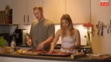00:47:39Nachdem das Dessert abgeschlossen ist, konzentrieren sich die beiden auf die Zubereitung der sommerlichen Ofentomaten-Suppe als Vorspeise. Dafür müssen verschiedene Tomaten halbiert oder viertelt, Zwiebeln und Knoblauch vorbereitet und alles gemeinsam im Ofen geröstet werden. Asta nutzt die Zeit, um die Funktion eines neuen AEG-Gerätes, das Gemüse klein schneidet, vorzuführen. Bei diesem Prozess werden auch kleine, humorvolle Streitereien zwischen den beiden über die Handhabung der Geräte und die Arbeitsweise in der Küche ausgetragen, die den lockeren Charakter des Streams unterstreichen.