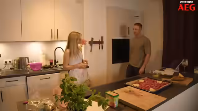 01:30:03Nach dem emotionalen Konflikt findet eine ungewöhnliche Ablenkung statt, bei der die Streamerin ihren Partner auf spielerische Weise dominieren und wie ein Hund „Revier markieren“ möchte. Diese Szene dient als humorvoller Übergang. Der Fokus verlagert sich dann auf die Demonstration der Funktionen des AEG-Backofens, insbesondere der Dampfbackfunktion, der Selbstreinigung durch Wasserdampf und der Möglichkeit, trockenes Brot zu rehydrieren. Der Partner übernimmt kurz die Kamera, um aus der Perspektive des Ofens zu filmen.