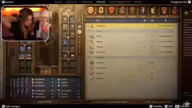 04:02:14Die Streamerin äußert ihre Frustration über den Spielverlauf von Kingdom Come Deliverance. Sie fühlt sich nirgendwo willkommen, hat ständig Hunger und niedrige Lebenspunkte, zahlreiche Quests und erreicht ihre Ziele nicht. Sie beklagt ihr fehlendes Charisma und ihre mangelnde Überzeugungskraft. Nachdem sie Ärger mit einem Wirt hatte, zahlt sie widerwillig, um weiteren Problemen aus dem Weg zu gehen. Sie kämpft mit den Herausforderungen des Spiels und fühlt sich überfordert. Später im Spiel wird sie von einem Mann überfallen, kann aber fliehen. Sie nimmt eine Quest an, die zwei vermisste Gehilfen eines Schmieds zu finden und macht sich auf den Weg, diese zu suchen. Sie levelt ihren Charakter auf und verbessert ihre Fähigkeiten, um im Spiel besser voranzukommen. Sie nimmt einen Job als Schmied an und lernt, wie man Schwerter und andere Gegenstände herstellt.