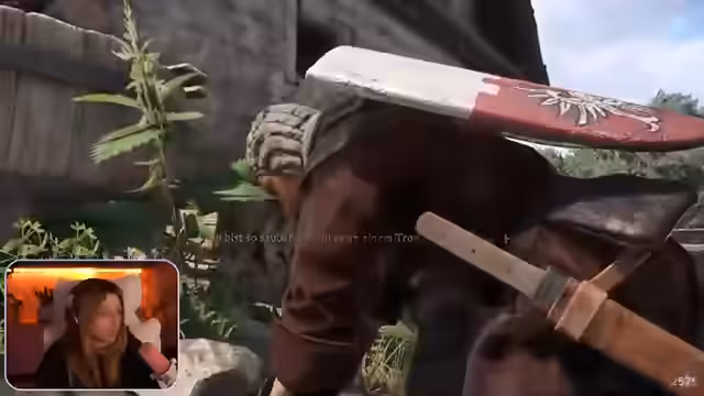 01:07:23Die Streamerin findet keine Spur von Köter und vermutet, dass ihn jemand aufgenommen hat. Sie beschließt, das Kräuterweib zu fragen, ob sie ihn gesehen hat. Außerdem erinnert sie sich daran, dass Bellarmar ihr von einem Schausteller namens Kater im Nomadenlager erzählt hat. Sie plant, ihn ebenfalls zu treffen. Die Streamerin stellt fest, dass sie im Kampf gut ist und wahrscheinlich keinen Kampf verlieren wird. Sie zieht ihr Schwert und wird sofort angegriffen, was sie überrascht. Sie stirbt und muss von vorne beginnen, was sie dazu bringt, vorsichtiger zu sein und das Spiel regelmäßig zu speichern. Sie trifft auf die Kräuterfrau, die ihr erzählt, dass ihre Tochter Pavlena verschwunden ist und sie bittet, sie zu suchen. Die Streamerin erklärt sich bereit, Pavlena zu suchen, möchte aber vorher noch nach Köter suchen.