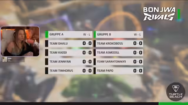 02:11:58Die Gruppenphase ist abgeschlossen, und Team Jenian hat sich mit einem Score von 2:1 als Top Seed in Gruppe A durchgesetzt, gefolgt von Team Dado mit ebenfalls 2:1. Die Platzierung wurde durch den direkten Vergleich entschieden. In Gruppe B dominierte Team Krokoboss mit 3:0, gefolgt von Sarah Tonin mit 2:1. Die KI hat einen Turnierbaum erstellt, der die nächsten Matches festlegt: Team Jenian tritt gegen Team Asmugel an, Team Dalu gegen Team Papo, Team Kadi gegen Team Saratonin und Tim Horus gegen Team Krokoboss. Alle Matches finden gleichzeitig statt, um Fairness zu gewährleisten. Die Zuschauer werden gebeten, in den Raumeinstellungen das Spectaten für Freunde zu ermöglichen, damit die Matches verfolgt werden können. Es wird eine kurze Pause bis Minute 40 angekündigt, um Strategien zu besprechen und sich vorzubereiten.