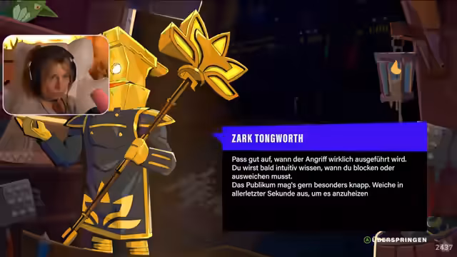 03:34:15Im King-of-Meat-Modus wird der Spieler durch einen Coach-Ratgeber namens Ruslin eingeführt, der grundlegende Strategien und Kampffertigkeiten erklärt. Die Trainingsmechaniken umfassen Parieren, Ausweichen und den richtigen Einsatz von Schild und Waffe. Gegner werden analysiert, um ihre Schwachstellen zu erkennen und Angriffsmuster zu lesen, um erfolgreich zu sein.