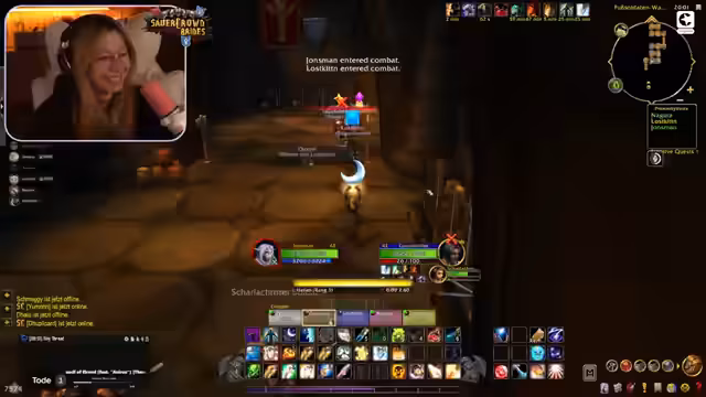05:09:41Die Streamerin reflektiert über ihre Routine in World of Warcraft und erwähnt, dass sie eine bestimmte Instanz zum vierten Mal absolviert hat. Sie diskutiert mit anderen Spielern über Spielstrategien und welche Quests sie als nächstes angehen könnten, wobei sie auch ihre Erwartungen an das Gameplay äußert. Die Atmosphäre ist entspannt und konzentriert auf das gemeinsame Vorgehen in der Gruppe, wobei sie ihre Bewegungen und Aktionen im Spiel genau beschreibt.