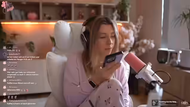 02:54:23Nach den aufreibenden Spielen wünscht sich die Streamerin einen gemütlichen, entspannten Cozy Sunday. Dies steht im starken Kontrast zum vorherigen, stressigen Gameplay, bei dem Anfeuerungen und ein aggressiverer Ton dominierten. Der Tonfall und die Atmosphäre im Stream ändern sich schlagartig in eine ruhige, intime Konversation, die von einem Streit begleitet wird, der die cozy-Aura für einen Moment unterbricht.