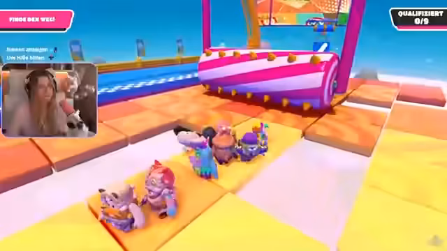 00:37:34Nach den Ankündigungen beginnt das geplante Spiel Fall Guys. Jen und die Zuschauer erleben jedoch erhebliche technische Probleme. Das Spiel startet nicht und gibt Fehlermeldungen wegen fehlender Dateien aus, trotz mehrfacher Neuinstallation und verschiedener Lösungsversuche. Trotz der Frustration über die Lags und den Spielabbruch gelingt es, eine Lobby zu erstellen. Die Gruppe spielt das Minispiel 'Schwanz klauen' und erlebt dabei einen lustigen Bug, bei dem mehrere Spieler aufeinandergestapelt sind.