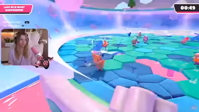 01:30:49Der Stream beginnt mit chaotischen Partyspielen, bei denen die Teilnehmer als Melonen-Stapel-Katze ums Überleben kämpfen. Es finden sich spontane Teams und Taktiken heraus, wie das gegenseitige Blockieren, um Konkurrenten vom Kurs zu werfen. Die Atmosphäre ist von hochspannenden, knappen Situationen geprägt, in denen Kollisionsgefahr mit Gegenständen und anderen Spielern die ständige Bedrohung darstellen. Der Fokus liegt auf dem gemeinsamen Ziel, als Teamletzte zu überleben und gegenseitig zu unterstützen.