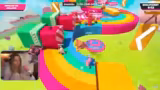01:38:03Nach mehreren chaotischen Runden wechselt der Stream zu einem Zeitrennen-Parcour-Modus. Die Spieler bewegen sich durch verschiedene, anspruchsvolle Strecken mit Hindernissen und springen von Plattform zu Plattform. Ein zentrales strategisches Element ist das Nutzen des Windschattens, um Geschwindigkeit aufzubauen und die Zeit zu verbessern. Die Maps werden zufällig generiert und sind sehr anspruchsvoll, was zu wiederholten Versuchen und frustrierenden Fehlern führt.