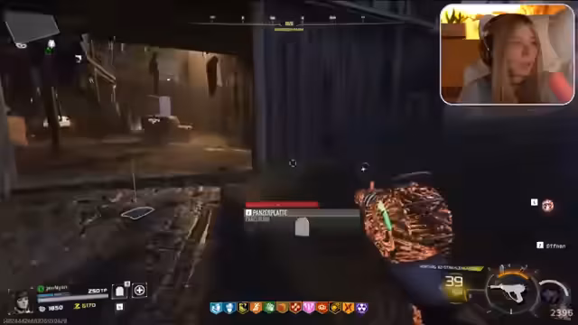 01:11:42Der Stream wechselt in den Zombie-Modus von Call of Duty. Jenny ist im Tutorial-Modus und versucht, die grundlegenden Mechaniken wie das Aufleveln, Waffenaufwertungen und das Finden von Power-Ups zu verstehen. Sie erkundet die Map und stößt auf Probleme, da sie sich schwer mit der Orientierung tut und den Chat um Hilfe bittet, ohne eine direkte Antwort zu erhalten.