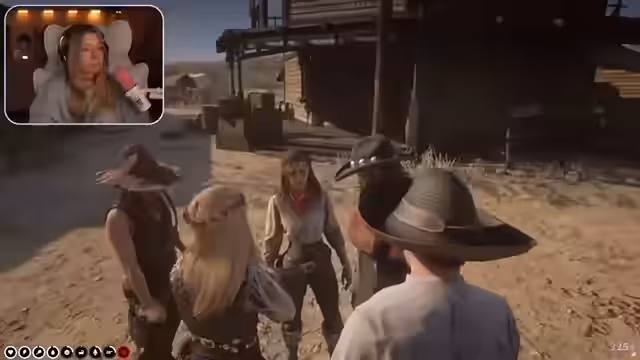 05:32:51Es wird diskutiert, ob jemand vorgeschickt werden soll, um die Lage im Office abzuchecken. Harmony bietet sich an, da sie glaubt, unerkannt in die Stadt reiten zu können und die Situation einzuschätzen. Die Gruppe stimmt ab, ob sie Harmony vorschicken sollen oder nicht. Es wird beschlossen, dass Harmony vorreitet und die Lage erkundet. Die Gruppe bleibt an einem vereinbarten Treffpunkt stehen und wartet auf ihre Rückkehr. Wenn Harmony nicht innerhalb weniger Minuten zurückkehrt, gehen sie davon aus, dass sie gefangen genommen wurde und stürmen das Office. Harmony zieht ihre Maske ab, um unerkannt zu bleiben, und reitet los. Die Gruppe wartet gespannt und bereitet sich auf die Einnahme des Office vor. Harmony kehrt zurück und berichtet, dass sie in der Stadt drei Sheriffs gesehen hat, die zusammen rumlaufen. Ansonsten sei die Stadt wie leergefegt. Es wird beschlossen, dass die Gruppe direkt zum Office reitet und es einnimmt.