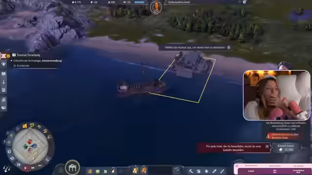 04:44:59Die Versorgung der Bevölkerung steht im Fokus, wobei zwischen verschiedenen Optionen wie Sardinen und Haferbrei gewählt werden muss, die unterschiedliche Bevölkerungswachstum und Einkommen bringen. Währenddessen wird ein Schiff losgeschickt, um die Karte zu erkunden und neue, wertvolle Inseln zu finden. Der Streamer erwähnt den Krieg gegen einen NPC-Gegner, bei dem sein Schiff beschädigt wird, was dazu führt, dass er nun einen Hafen und ein Schiffswerft bauen muss, um seine Flotte wiederherzustellen und seine Expansion fortzusetzen.