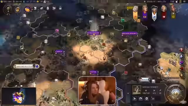 03:57:46Der Stream konzentriert sich intensiv auf das Strategiespiel 'Civilization 7'. Ein zentrales Thema ist die anfängliche Harmonie und die Diskussion über den zukünftigen Wendepunkt, in dem die Spieler in eine Phase des Wettbewerbs eintreten werden. Streamer und Zuschauer diskutieren über Taktiken, über das Sammeln von Truppen bei Heerführern, um diese im Epochenwechsel zu erhalten, und über die potenziellen Risiken von Allianzen. Auch das Problem eines verbuggt wirkenden Baus der Pyramiden in der Hauptstadt wird mehrfach angesprochen.