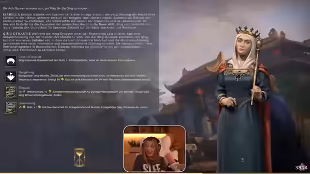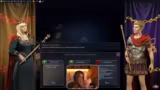 00:24:07Nach der Vorstellung des Plans startet das Civ 7-Turnier. Streamer und ihr Team Asta und Johnny treten an. Die Atmosphäre ist zunächst eher unbeschwert, bis während des Spielverlaufs einige technische und spielerische Hürden auftreten. Es kommt zu lustigen Missverständnissen und inner-teamlichen Anspielungen, unter anderem eine witzige Auseinandersetzung über die Spielfähigkeit und ein lustiger Moment, bei dem ein Teamkollege aus dem Spiel ausscheidet, was für Unterhaltung sorgt. Auch spielerische Herausforderungen, wie das Überwinden einer Leiter oder die Konfrontation mit einem Gegner, werden kommentiert.