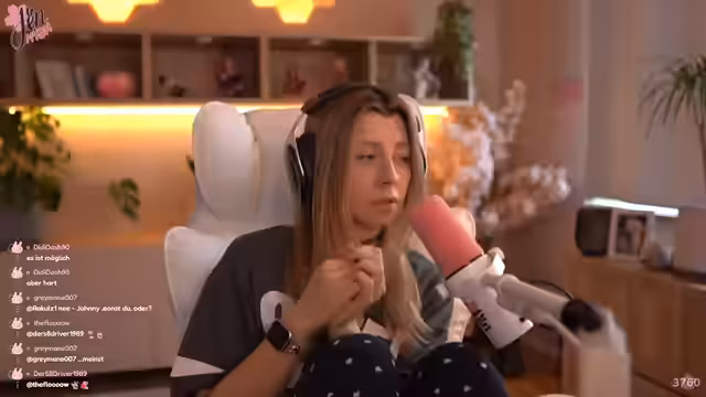 00:36:50Jenny berichtet von einem Ikea-Besuch mit Fee, bei dem sie Knister in der Wohnung geholfen haben. Sie beschreibt ein Vorher-Nachher-Bild und die lustige Aktion, Bilder für Kevins Bett zu kaufen, die nun über seinem Bett hängen. Jenny und Fee planen die Zusammenarbeit in einem Büro und zeigen ein KI-generiertes Bild ihrer zukünftigen Büroküche. Es wird überlegt, eine Sekretärin einzustellen. Jenny schaut sich ein Video von Sterzig an und kommentiert, dass es ihr zu gestellt wirkt. Sie reagiert auf verschiedene Inhalte, darunter ein Spiel, und kommentiert das Aussehen von Mikrofonen und Charakteren. Es wird über Tiergeräusche und einen Versprecher diskutiert, bei dem der Name Asta auf Georgisch eine unschöne Bedeutung hat. Jenny und ihre Mitstreiter sprechen über verschiedene Themen, darunter Unterwäsche, Gaming-Momente und Schimpfwörter im Spiel.