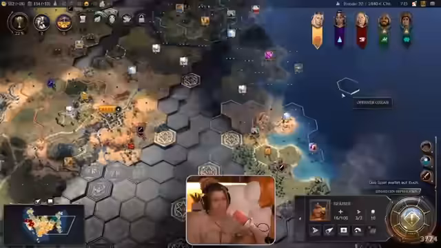 08:11:55Die Spielerin und andere diskutieren über Siedlungsstrategien und die Verteilung von Ressourcen auf der Karte. Es wird überlegt, wo neue Städte gegründet werden sollen, wobei Standorte mit wertvollen Ressourcen wie Marmor, Datteln, Kamele und Weihrauch bevorzugt werden. Die Möglichkeit, einen durch einen Vulkanausbruch geboosteten Standort zu nutzen, wird ebenfalls in Betracht gezogen. Es wird auch über die Entfernung zwischen Städten und die Notwendigkeit gesprochen, Filler-Städte zu platzieren, um Gebiete zu beanspruchen. Die Spielerin äußert den Wunsch nach gemeinsamer Forschung und bietet diese auch an. Sie stellt fest, dass rechts von ihr noch viel Land frei ist und sie Persien begegnet ist. Die Spielerin erklärt ihre Strategie, Städte etwas weiter weg von der Hauptstadt zu platzieren, um Ressourcen zu sichern und später Filler-Städte zu bauen. Sie diskutiert mit anderen Spielern über potenzielle Siedlungsstandorte und die damit verbundenen Vorteile, einschließlich des Zugangs zu Kamelen, Räucherwerk, Datteln und Marmor.