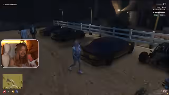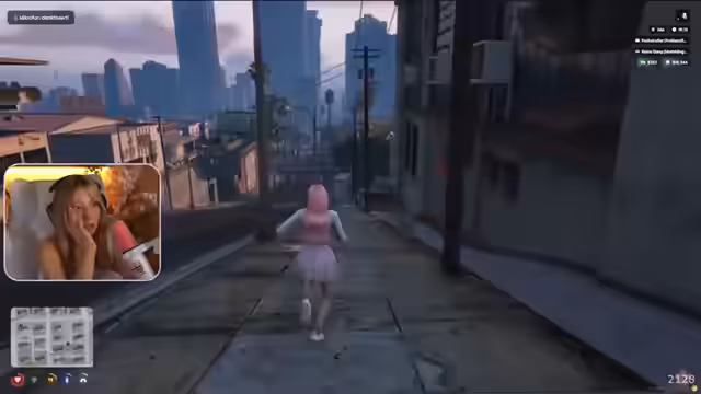 01:21:21Nach den Ankündigungen und der Überraschung beginnt der Hauptteil des Streams: ein Roleplay in einer virtuellen Stadt. Die Streamerin interagiert mit anderen Charakteren und taucht tief in die Spielwelt ein. Sie erkundet das Stadtleben, geht einkaufen, versucht, ihr Auto umzulackieren und navigiert durch die Mechaniken des Spiels, wie z.B. Animationen und Bewegungen, wobei sie anfangs noch Schwierigkeiten mit der Steuerung hat.