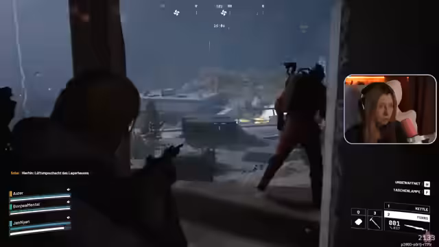 12:21:13Das Team beginnt die Erkundung der Karte 'Raumhafen' mit dem Ziel, zusammenzubleiben und High-Loot-Spots zu finden. Die Anweisung des Commanders ist es, sich nicht von großen Spinnen oder Drohnen ablenken zu lassen, es sei denn, es ist absolut notwendig. Erste Schüsse aus dem Norden werden gehört, was auf feindliche Präsenz hindeutet. Das Team bewegt sich vorsichtig durch das Gebiet und sichert einen Bereich, in dem sich der Kern der Karte befindet. Ein Spieler gerät in eine gefährliche Situation, als er fast von einem Geschützturm eliminiert wird, kann diesen aber erfolgreich ausschalten. Die Kommunikation über feindliche Positionen und die Koordination der Angriffe sind entscheidend, um die Bedrohungen zu bewältigen. Es kommt zu einem Gefecht mit einem gegnerischen Spieler, der erfolgreich ausgeschaltet wird. Die Spieler sammeln Munition und Loot, während sie sich weiter durch das Gebäude bewegen. Die Vorsicht bleibt hoch, da jederzeit weitere Gegner oder Drohnen auftauchen können. Die strategische Entscheidung, sich nicht aufzuhalten und weiter vorzudringen, wird getroffen, um die Mission erfolgreich fortzusetzen.