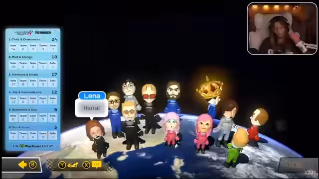 02:11:00Das große Finale des Turniers wird mit individuellen Items und ohne Teams gespielt. Die erlaubten Waffen sind auf Bananen, Tintenfisch und Bomben beschränkt. Die Teilnehmer wählen Maps wie Babypark und Autobahn, die aufgrund ihrer engen Kurven und vielen Hindernisse besonders tückisch sind. Das Rennen ist von Chao und Unübersichtlichkeit geprägt, da man durch den Tintenfisch die Sicht verliert und ständig auf Bananen oder Bomben fährt. Am Ende werden die finalen Punkte vergeben und der Gewinner des gesamten Turniers bekannt gegeben.