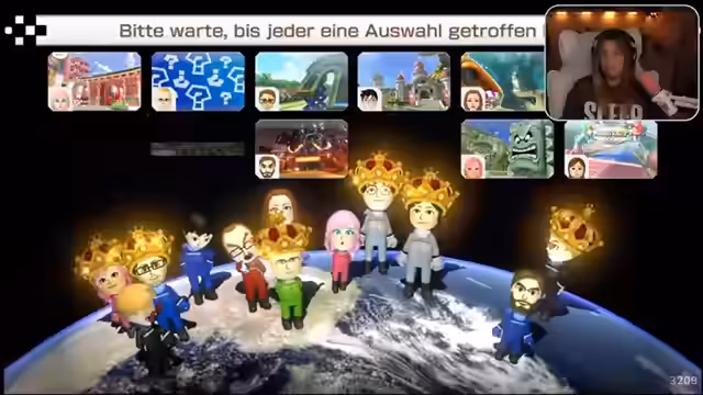 01:25:12Zu Beginn des Streams stehen mehrere Teamrennen im Fokus, bei denen es um Punkte in einer Gesamtwertung geht. Es gibt mehrere Teams, wie Team Rot, Team Blau und weitere Kombinationen. Die Rennen sind von hohem Tempo und aggressivem Item-Einsatz geprägt. Spieler schießen sich gegenseitig mit Raketen und Bananen ab, um vorn zu bleiben oder Rivalen auszuschalten. Es kommt häufig zu Platzierungen weit hinten und Frust über die unfaire Verteilung von Items, insbesondere wenn ein Spieler als Erster nur blaue Panzer abbekommt und nicht ausweichen kann.