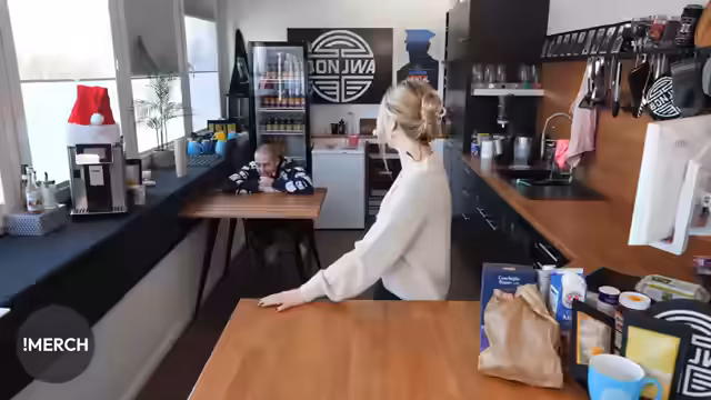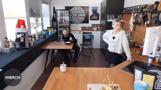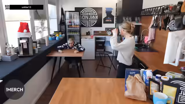 00:33:39Jen kritisiert die chaotische Organisation der Küche: Schüsseln sind willkürlich in Auflaufformen und Schubladen verteilt, ohne System. Sie verknüpft dies mit der Kooperation mit Bonjra und dessen Werten wie bewusstem Konsum. Als Beispiel wird der Befehl „Fick die Werte“ genannt, der bei Bonjra nicht funktioniert. Die Diskussion zeigt interne Spannungen über Unternehmensstrukturen.