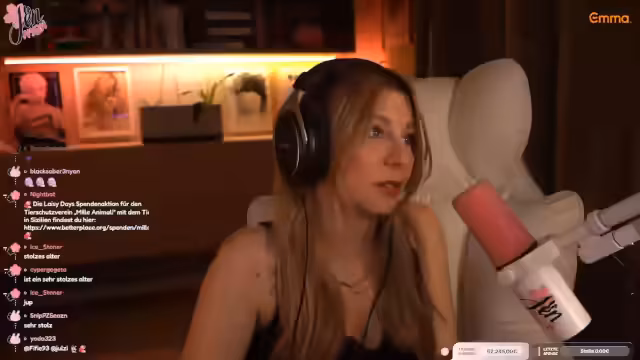 00:15:16Der Stream beginnt mit einer herzlichen Begrüßung der Community. Die Streamerin begrüßt die Zuschauer, die sie lange nicht mehr gesehen haben, und stellt sich als "Mr. Jen von Jan" vor. Sie erläutert kurz, warum sie eine längere Pause eingelegt hat und wie genehmigt ihr Comeback ist. Zudem weist sie darauf hin, dass sie während des Streams oft an ihren verstorbenen Hund Asta denkt.