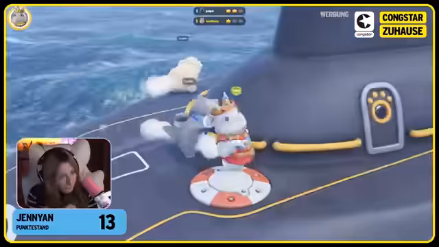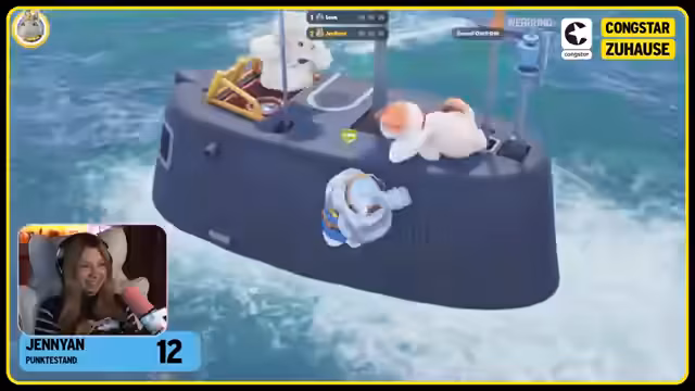 04:11:05Die Kämpfe in Party Animals werden zunehmend chaotischer, und Jenyan dominiert weiterhin die Runden. Die Spieler versuchen, ihre Kletter- und Greiftechniken zu verbessern, um gegen sie anzukommen, aber Jenyan scheint unaufhaltsam zu sein. Es kommt zu humorvollen Szenen, in denen Spieler versehentlich von Plattformen fallen oder sich gegenseitig mit Objekten bewerfen. Trotz der Bemühungen der anderen, Jenyan zu besiegen, gewinnt sie weiterhin die Runden, was zu Frustration und Gelächter führt. Die Spieler versuchen, sich zu verbünden, um Jenyan zu stoppen, aber ihre Überlegenheit bleibt bestehen. Die Runde endet mit weiteren chaotischen Szenen, in denen die Spieler versuchen, sich gegenseitig ins Wasser zu stoßen oder von der Plattform zu werfen, während Jenyan weiterhin die Oberhand behält und die anderen in den Wahnsinn treibt.