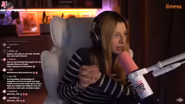 07:57:16Jenny bemerkt, dass Harmony in anderen Streams anders wirkt als aus der ersten Person und dass der 'Cringe' im aktuellen Rollenspiel eine ernstere Wendung genommen hat. Sie plant, Attribute von Harmony in ihr zukünftiges GTA-Rollenspiel mit Melody zu integrieren, um eine tiefere und weniger naive Charakterentwicklung zu ermöglichen. Ihr Wunsch für Melody ist es, dass sie 'auf die Fresse fliegt' und 'gepowert' wird, um zu verlieren, damit sie einen Grund hat, sich zu entwickeln und ernster zu werden. Sie möchte, dass Melody als Charakter wächst und nicht von Anfang an perfekt ist. Jenny betont, dass sie im Rollenspiel Drama und 'Cringe' bewusst einsetzt, um gutes Storytelling zu schaffen und sich von anderen Streamern abzuheben, die eher auf Crime fokussiert sind. Sie möchte, dass die Leute sie mit Drama und Cringe, aber auch mit gutem Storytelling assoziieren.