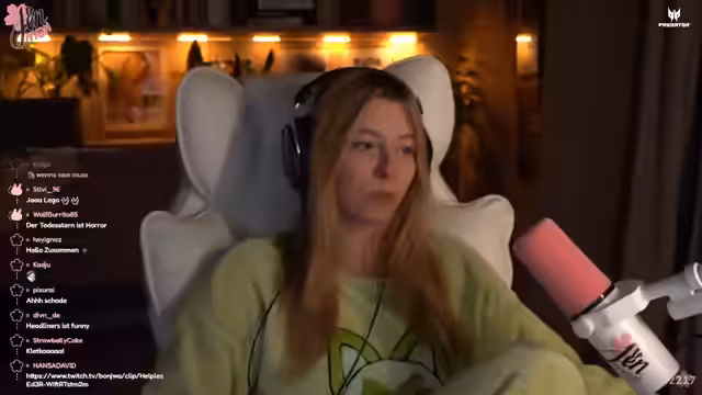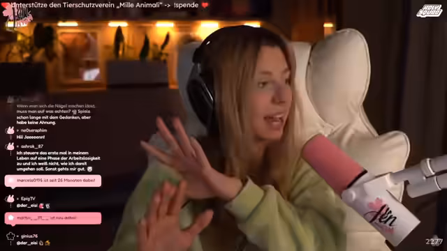 00:15:15Der Stream beginnt mit einer lockeren Atmosphäre, in der die Streamerin die aktuelle Stimmung und einige persönliche Erlebnisse teilt. Sie erwähnt, dass es ein dunkler und gemütlicher Tag ist, was sie dazu veranlasste, sich von der Couch aufzuraffen. Ein weiteres Thema sind ihre frisch gemachten Nägel, deren Design sie als pilzartig empfindet und die sie dazu bewegen, ein neues Nagelstudio zu suchen. Sie bedankt sich bei L. Twain für einen Raid und nimmt sich Zeit, auf eine Zuschauerin einzugehen, die nach einer Trennung Trost in ihren Streams gefunden hat. Dies unterstreicht die persönliche und unterstützende Atmosphäre, die sie in ihrer Community pflegt. Sie reflektiert auch über die schnelle Lieferung ihrer Merchandise-Artikel, die bereits bei den Zuschauern angekommen sind, und freut sich über das positive Feedback zur Qualität der Produkte. Die Streamerin betont, dass sie das Meet & Greet mit den Fans genießt und es ihr viel Spaß macht, direkt mit ihrer Community in Kontakt zu treten.