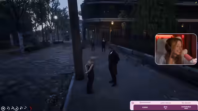 04:35:10Die Streamerin, in ihrer Rolle als Harmony Briggs, trifft auf Richter Jack Weber, der auf einen Termin wartet. Sie ist auf der Suche nach einem Officer und fragt nach dem Weg zum Office. Es entspinnt sich ein humorvoller Dialog über Wegbeschreibungen und ihre Verwirrung. Harmony Briggs erzählt von ihrer Suche nach Jimmy O'Neill, der sich angeblich als Briggs ausgegeben und in den Zellen gesessen haben soll. Richter Weber hat Jimmy noch nie gehört und beschreibt ihn als klein, verkommen und mit blondem Haar. Harmony Briggs erwähnt, dass Jimmy sehr kriminell ist und sie ihn in Van Horn vermutet, einem Ort, den sie als 'widerlich' beschreibt, da sie sich dort vorgestellt hat, als Mann vom Balkon zu urinieren, um ihr Revier zu markieren.