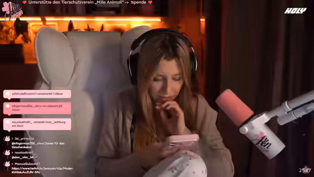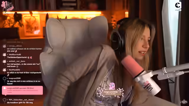 05:24:56Nach der COD-Niederlage und der Magic-Karten-Session kündigt die Streamerin an, sich Subway zu bestellen, um sich abzulenken. Sie scherzt über die Niederlage und die Notwendigkeit einer Revanche. Während der Bestellung und des Wartens auf das Essen kommt die Diskussion über das kontroverse Video über Gamerinnen erneut auf. Die Streamerin sucht weiterhin nach dem Originalvideo, in dem zwei Frauen behaupten, dass erwachsene Männer, die Gamer sind, „nichts Schlimmeres“ seien. Sie äußert ihre Irritation über solche pauschalen Aussagen und die mangelnde Toleranz gegenüber den Hobbys anderer. Es wird ein Kommentar von Dominik, der über einen Alina-Account schreibt, als „Schmutz-Nachricht“ bezeichnet, da er ein unseriöses Angebot für mehr Umsatz neben OnlyFans macht. Die Streamerin präsentiert stolz ein Sakura-Blüten-Würfel-Set mit ihrem Namen „Jen-Nyan“ im flüssigen Kern, das sie auf einer Messe erhalten hat und als ihre schönsten Würfel bezeichnet. Sie erinnert sich an ihre Freude und Überraschung, als sie die Würfel geschenkt bekam. Die Subway-Bestellung wird aufgegeben, und es wird über die Möglichkeit gesprochen, Subplatten zu bestellen. Die Suche nach dem Originalvideo über Gamer bleibt bestehen, da die Streamerin die Meinungen und die dahinterstehende Argumentation verstehen möchte.