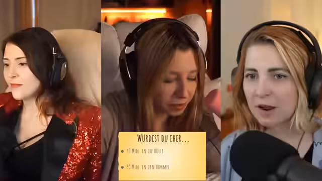 06:52:55Die nächste Frage lautet, ob man lieber für 30 Minuten in die Hölle oder in den Himmel gehen möchte, wobei in beiden Fällen Sicherheit garantiert ist und eine begleitende Person alles erklärt. Es handelt sich um eine Art Sightseeing-Tour, bei der man alles erkunden und Fragen stellen kann. Die Option, im Himmel geliebte Menschen wiederzusehen, wird als potenzieller Vorteil genannt. Popkulturell wird die Hölle als spannender und interessanter empfunden, da sie mehr Raum für „perverse Dinge“ und „sexy Sachen“ bieten könnte. Die Entscheidung fällt schwer, da beide Orte ihre Reize haben. Während ein Teilnehmer den Himmel bevorzugt, um sich die „Vertragsbedingungen“ anzusehen und den Tierbereich zu erkunden, stimmt die Mehrheit der Reddit-Nutzer für die Hölle, was die Streamer überrascht und zu der Frage führt, was dies über die Präferenzen der Zuschauer aussagt.