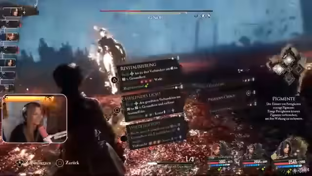 01:14:05Nach den persönlichen Ankündigungen und Plänen beginnt jennyan mit dem Hauptprogramm des Streams: dem Finale von Claire Obscure. Sie spricht mit ihrer Community über die anstehenden Kämpfe und die Notwendigkeit, die Charaktere leveln zu müssen, um mit den starken Gegnern Schritt halten zu können. Während des Spiels erzählt sie die fortlaufende Geschichte der Expedition und versucht, die Motivationen der Charaktere, insbesondere der Malerin, zu verstehen und zu entschlüsseln, um das Geheimnis der Gommage zu lüften.