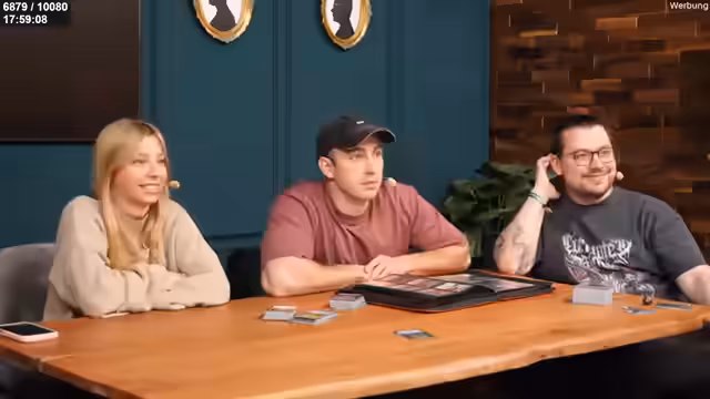 00:47:08Um die Community einzubinden, fragt Jen, wer bereits Magic spielt oder neu einsteigen möchte. Viele Zuschänger geben an, Magic zu mögen. Es wird erklärt, dass Einstiegspacks (Precons) ideal für Neueinsteiger sind, da sie ein sofort spielbares Deck bieten. Jen nennt hilfreiche Ressourcen wie das Online-Spiel Magic: The Gathering Arena, um die Regeln zu lernen, und betont, dass der soziale Aspekt bei Commander-Runden besonders wichtig ist.