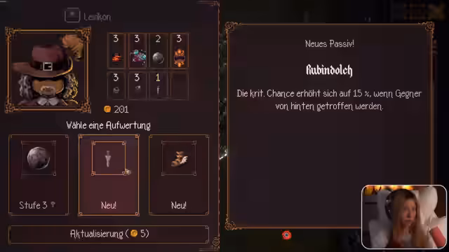 05:03:03Das Spiel erreicht einen Höhepunkt an Intensität, mit vielen passiven Items und Laserstrahlen, die das Gameplay sehr süchtig machend machen. Der Streamer kämpft mit einem Boss und muss sich stark konzentrieren, um die Schilde des Gegners zu durchbrechen. Trotz eines Rückschlags durch einen 'One-Hit-Kill' bleibt die Motivation hoch, das Spiel zu meistern. Es wird über die strategische Platzierung von Gebäuden und deren Boni diskutiert, um die Charakterwerte zu verbessern. Der Streamer plant, weitere Baupläne im ersten Level freizuschalten, um neue Charaktere zu erhalten. Es wird auch die Möglichkeit erwähnt, die Spielgeschwindigkeit zu erhöhen, um den Schwierigkeitsgrad zu steigern. Der Stream endet mit einem Ausblick auf zukünftige Streams und eine Weiterleitung an den Stream von Fee und Winn.