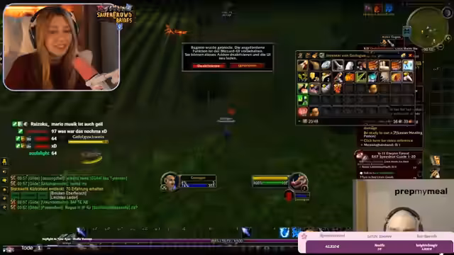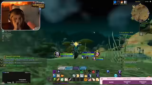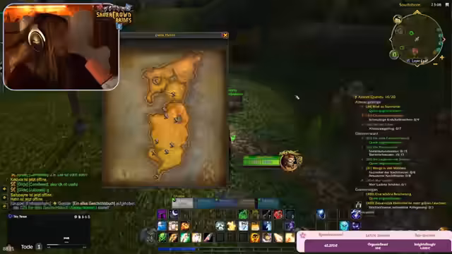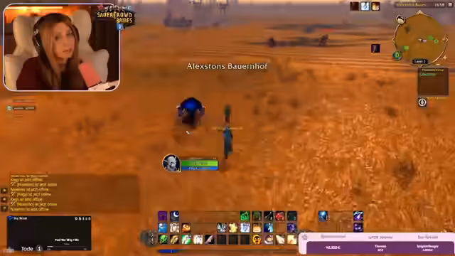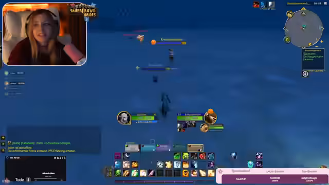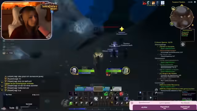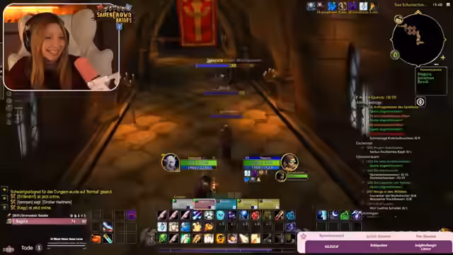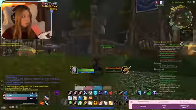 09:35:58Die Streamerin bittet die Chat-Mitglieder darum, ihre Gruppenmitglieder für den Dungeon 'Krall' einzuladen und stellt kooperative Unterstützung in Aussicht. Ein komplizierter Quest-Start in Ratchet wird erklärt, der bestimmte Voraussetzungen erfordert. Während des Reisens durch 'Sumpfland' wird eine unvorhergesehene PvP-Situation mit einer Horde-Patrouille erwähnt, die zum Tod eines Gruppenmitglieds führt und die Gefahren des Gebietes verdeutlicht.