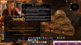 01:03:23Die Streamerin versucht, eine Gruppe für verschiedene Dungeons im Kloster zu organisieren. Es kommt zu Verwirrung darüber, welcher Dungeon für welches Level geeignet ist und wer welche Rolle übernehmen kann (Tank, Damage). Währenddessen werden Pläne für den weiteren Verlauf des Tages geschmiedet, darunter das Helfen bei bestimmten Quests und das Finden weiterer Gruppenmitglieder.