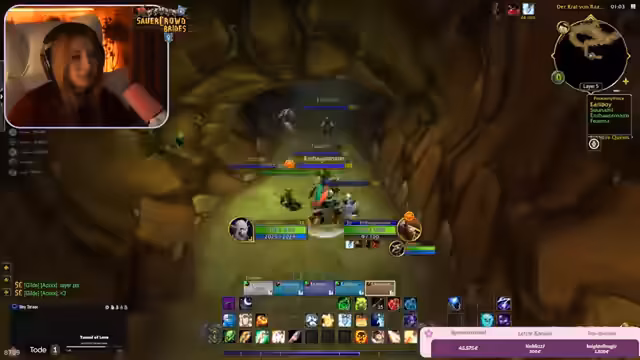 01:14:14Es gelingt, eine vollständige Gruppe für den Dungeon 'Friedhof' im Kloster zu formieren. Die Streamerin und ihre Mitspieler starten in den Dungeon, der sich als Herausforderung herausstellt. Gleichzeitig plant jemand anderes, die Lüne-Quest zu machen, und es wird diskutiert, wie man die Zeit am besten nutzt, um sowohl das Leveln als auch die Questziele zu erreichen.