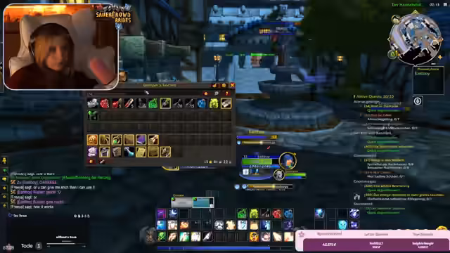 02:38:07Zu Beginn des Streams beschäftigt sich jennyan mit dem aktuellen Gameplay in einem World of Warcraft Dungeon. Das Team arbeitet an einem Bosskampf, wobei jennyan die Koordination der Unterbrechungsspells übernimmt und mit ihren Mitspielern die Strategie abstimmt. Es gibt Diskussionen über die Rotation und die Fähigkeiten des Bosses, der verschiedene Effekte hat. Gleichzeitig führt ein Gespräch über die Haltung einiger deutscher Streamer gegenüber dem World of Warcraft Hype und wie sich das Spiel verändert hat.
