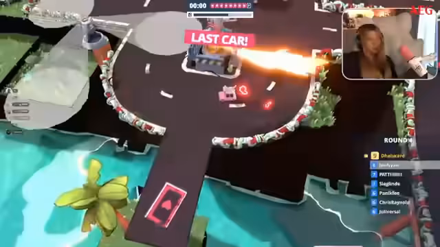 01:44:58Es folgt ein segment eines Rennsports, bei dem der Streamer gegen Gegner antritt. Trotz eines anscheinenden Vorteils durch einen Sabotageakt des Gegners 'Chris', gerät der Streamer in Schwierigkeiten und verliert die Kontrolle über das Fahrzeug. Es kommt zu mehreren Unfällen und der Streamer muss seine Strategie anpassen. Kommentare von 'Scheiße!', 'Oh, fuck!' und 'Ich brauch Gas' zeigen die Hektik der Situation, während der Streamer verzweifelt versucht, den Überblick zu behalten.