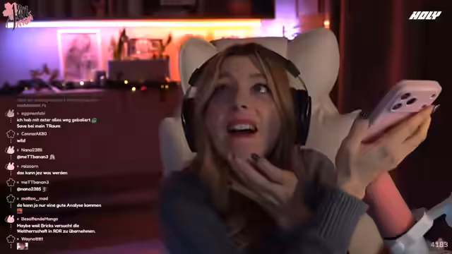 03:01:55Zunächst herrscht Verwirrung über einen möglichen Feuer-Ausbruch im Spiel. Obwohl mehrere Chatnachrichten auf ein Feuer hinweisen, kann die Streamerin es nicht selbst entdecken und ist unsicher, ob es sich um ein technisches Problem oder eine Fehlmeldung handelt. Die Situation bleibt unklar, was zu einer allgemeinen Verwirrung unter den Zuschauern führt.
