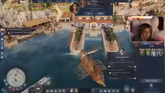 03:03:50Die Streamerin beschäftigt sich intensiv mit dem Aufbau ihrer zweiten Insel in Anno 1800 und berät mit der Ko-Streamerin über die optimale Platzierung. Es geht darum, welche Ressourcen wie Wein, Oliven und Trauben benötigt werden und wie die verfügbaren Inseln mit ihren jeweiligen Besonderheiten am besten genutzt werden können, um eine optimale Versorgung zu gewährleisten.
