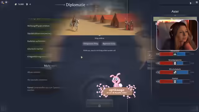 08:54:09Während des Streams treten massive technische Probleme auf. Jens Spiel stürzt ab und sie verliert Spielstand und Fortschritte. Sie verliert etwa 13.000 Gold und die Hälfte ihrer Bevölkerung. Nachdem sie den letzten Spielstand wiederhergestellt hat, wird sie erneut eingeladen. In der Zwischenzeit unterhält sie sich über verschiedene Themen wie Energy-Drinks und die Comic-Con. Als sie wieder im Spiel ist, erhält sie ein Angebot für diplomatischen Frieden von dem Spieler, der ihr zuvor den Krieg erklärt hatte, was sie nun annimmt.