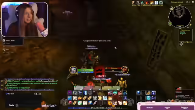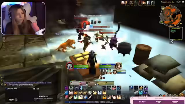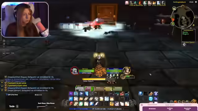 04:37:21Nach einem ersten, eher chaotischen Teil des Streams kehrt der Streamer zu grundlegenden Spielmechaniken zurück. Es gibt eine Diskussion über das Erlernen neuer Fähigkeiten, wie das Klassenbuch für Paladine, das eine Kerze als Reagenz erfordert. Die Gruppe macht sich auf den Weg zu einem Boss namens Lord Roccor. Währenddessen wird die Schwierigkeit des Dungeons deutlich, als eine unkontrollierte Patrouille von Hunden fast zum Wipe führt. Nach einem engen Kampf analysiert der Streamer die Situation und plant, nach Abschluss des Dungeons eine Pause einzulegen.
