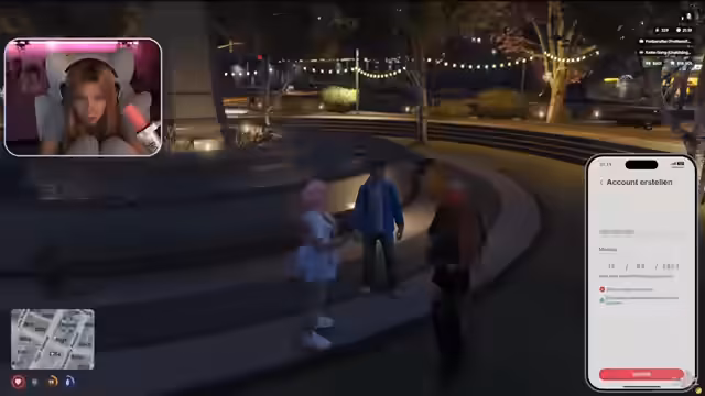 04:35:48Nach dem erfolgreichen Führerscheinkauf macht die Streamerin die Bekanntschaft eines anderen Spielers, der sich als 'Schimmel' vorstellt. Sie lernen sich im Stadtpark kennen und tauschen ihre Handynummern aus. Schimmel rät ihr, Arbeit zu suchen, und erwähnt illegale Angebote wie den Anbau von Gras. Die Streamerin zeigt sich offen für Möglichkeiten als Influencer oder Personal Assistant. Die Gründung einer 'Girl Group' für toxische Männlichkeit wird als humorvolle Idee ins Gespräch gebracht.