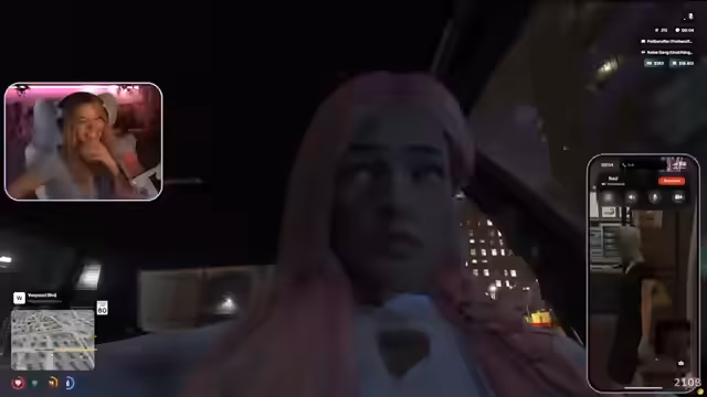 03:44:20Die Streamerin gelangt in eine interaktive Szene, in der sie auf einen anderen Spieler trifft. Gemeinsam beschließen sie, ein Taxi zu rufen, um zur Führerscheinprüfung zu gelangen. Nach dem Anruf und der Wartezeit taucht tatsächlich ein Fahrzeug auf. Beide steigen ein und werden zum Zielort gebracht, was den Start einer gemeinsamen Unternehmung markiert. Das Zusammentreffen wird vom Streamer als 'Schicksal' bezeichnet.