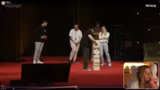 01:47:54Die erste interaktive Runde auf der Bühne war eine Schätzaufgabe über Gewichte, wobei Asta mit seinem Selbstbewusstsein überraschte. Ein zweites Spiel, das auf genauen Schätzungen basierte, folgte. Anschließend wurde ein Jenga-Spiel veranstaltet, bei dem das Team Jen und Asta nach einem turbulenten Spiel gewann. Diese Phase war geprägt von Hektik, dem schwankenden Bühnenboden und dem Mitfiebern des Publikums.