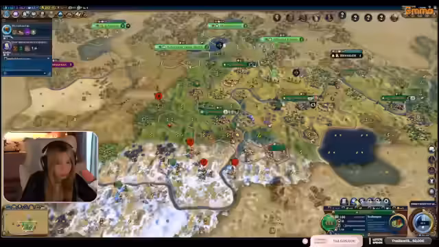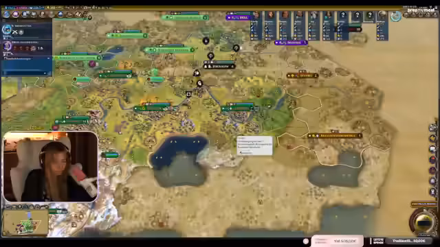 03:13:44Zu Beginn des Streams stellt die Streamerin fest, dass die Map für alle Teilnehmer klein ist und nicht viel Platz bietet. Sie erwähnt, dass die Spielzeit heute kürzer sein wird als sonst. Ein erstes Problem zeigt sich, als sie feststellt, dass auf der Map eine Zivilisation namens Jenyan existiert, was sie für geografisch unmöglich hält und für einen Aprilscherz hält. Alle Spieler scheinen mit Barbaren konfrontiert zu sein, was die anfängliche Spielweise grundlegend verändert.