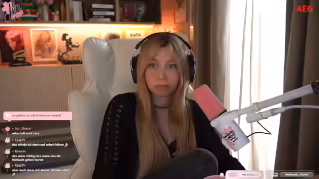 00:14:47Der Stream beginnt mit einer kurzen, hektischen Einleitung, in der die Streamerin gerade rechtzeitig mit Essen fertig geworden ist, das etwas scharf war. Sie begrüßt die Zuschauer herzlich und wünscht einen wunderschönen Mittwoch. Sie erwähnt ihren bevorstehenden Urlaub für eine Woche und teilt mit, dass sie gut durchgeschlafen hat und um 8 Uhr wach war. Ihr Hund, Kremlin, schläft bereits, was sie als Zeichen für einen entspannten Abend wertet.