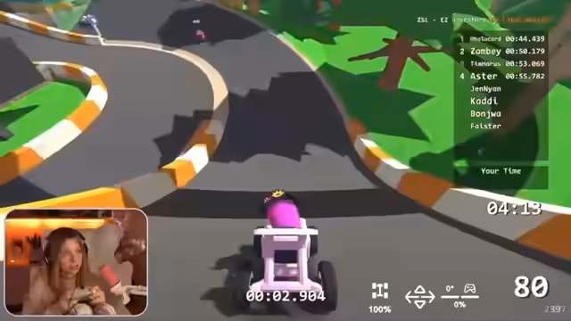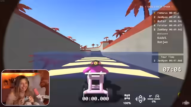 02:36:49Der Stream beginnt mit einer Rennrunde in einem anspruchsvollen Spiel. Die Streamerin kämpft mit einer anspruchsvollen Strecke, die sie als kacke beschreibt, und muss sich auf die Konzentration der Fahrt konzentrieren, da das Spiel sehr anstrengend ist. Sie verliert die Kontrolle über ihr Fahrzeug und gerät mehrmals in schwierige Situationen, wobei sie Zeit verliert. Trotzdem gelingt es ihr, eine neue persönliche Bestzeit zu erzielen, was sie als Sieg über sich selbst betrachtet. Auch andere Teilnehmer erleben ähnliche technische Schwierigkeiten und Stürze, was die Pannen zu einem wiederkehrenden Thema im Stream macht.